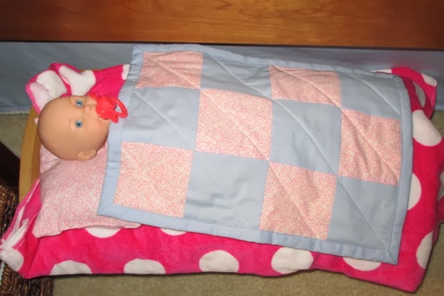 So excited about her baby doll! She got right to work changing the dolls clothes and feeding her a bottle.